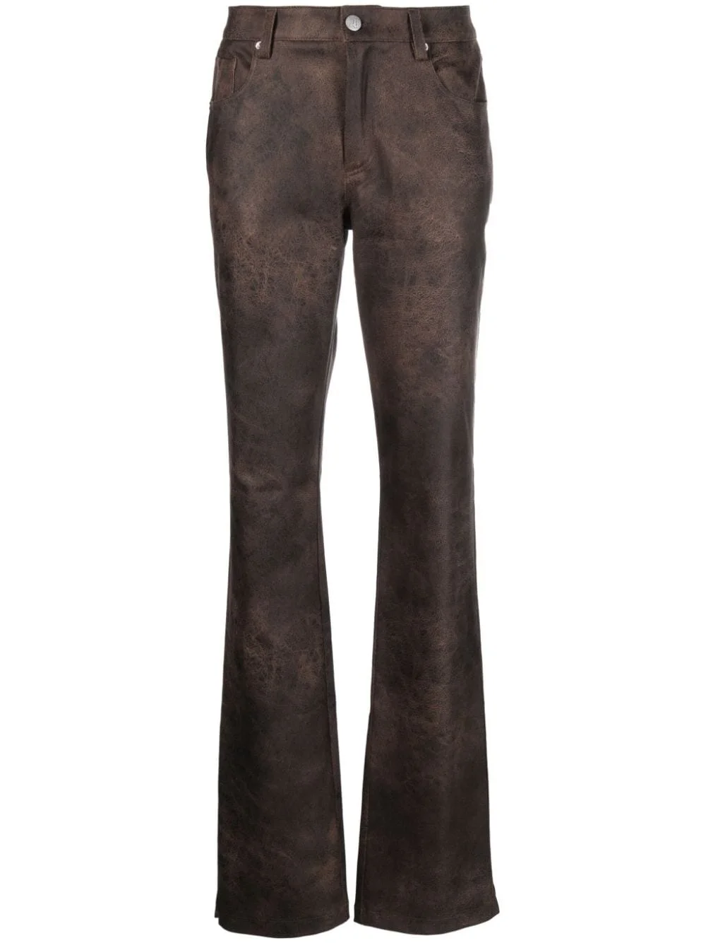washed-effect flared trousers Highlights - Cedar brown - Washed - Belt loops - Flared - Button fly fastening - Classic five pockets Imported Composition Polyester 92%, Elastane 8% SIZE & FIT Model measurements Height 5 ft 11 in(1.8 m) Bust/Chest 31.49 in(80 cm) Hips 35.43 in(90 cm) Waist 24.4 in(62 cm) FittingInformation Designed for a straight-leg fit, these trousers allow for a close fit at the waist and an unrestricted, comfortable fit over the leg Made from a midweight stretch fabric, this piece offers elasticity and flexibility when worn This piece fits true to size – take your usual size Washing instructions Hand Wash