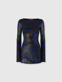 Bold elegance takes form in this women’s mini dress with long sleeves and a bateau neckline—a perfect balance of refined texture and modern design. Made in furry stitch, it softly embraces the silhouette, while the sprayed slub motif gives a dynamic, material look. The viscose-wool blend enhances the structure, making it a bold, modern piece for those who want to leave a mark with sophistication and personality. MORE DETAILS - Mini boatneck evening dress with long sleeves - Fur-stitch knit - Flamed and coated pattern - Wool and viscose blend Composition: EXTERNAL:53%Rayon, 47%Wool Care instructions: Hand wash ; Do not tumble dry ; Dry flat ; do not soak ; Do not dry clean ; Do not iron ; Ripetuti lavaggi tendono naturalmente a diminuire l’effetto speculare della lavorazione ; Cool Hand Wash ; Do not bleach Made in: Italy Product ID DS25WG2JBT00AIFM149