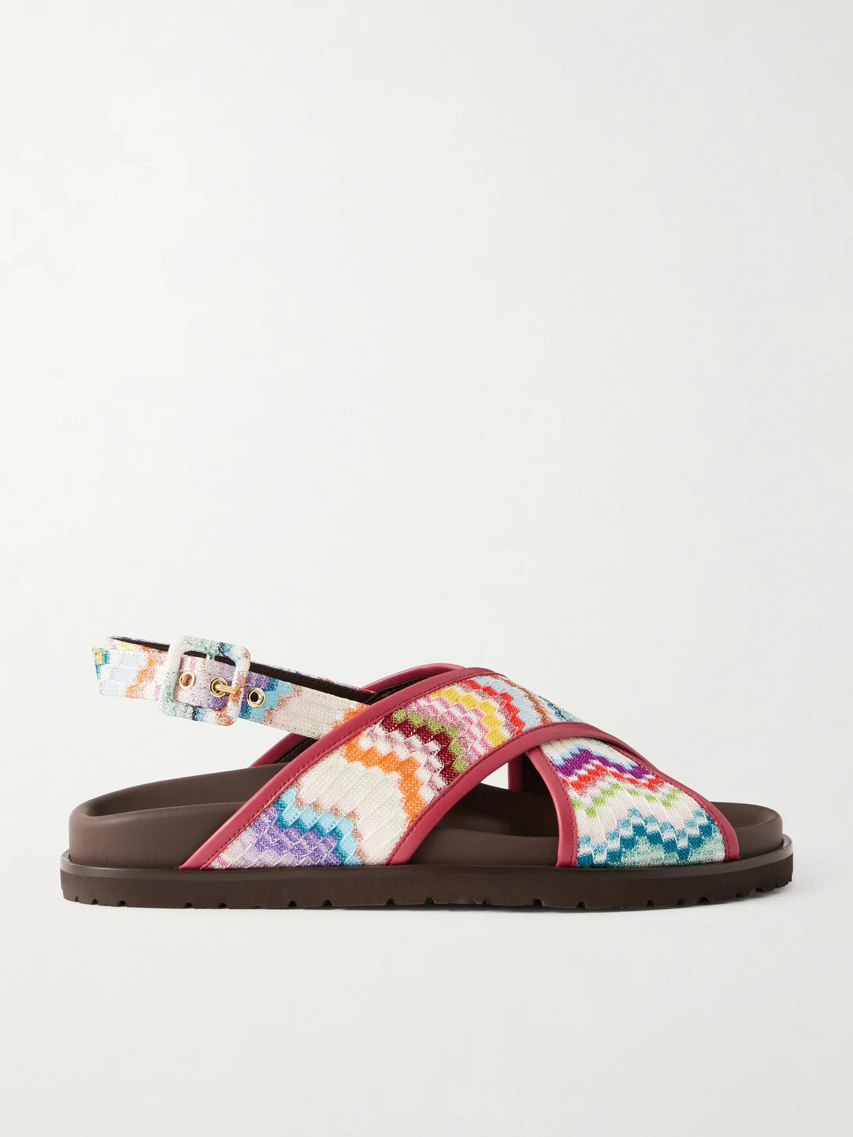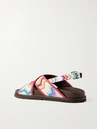 Missoni's ‘Allan' sandals reflect the label's joyful use of color. Crafted from shimmering Lurex in the house's signature zigzag motif, they have wide, leather-trimmed crossover straps and a tonal buckle at the ankle for a seamless finish.