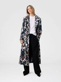Long Single-Breasted Coat with Animalier Pattern