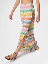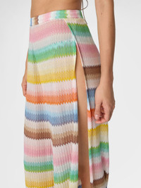 Beach cover-up pants with dégradé zigzag pattern and slits
