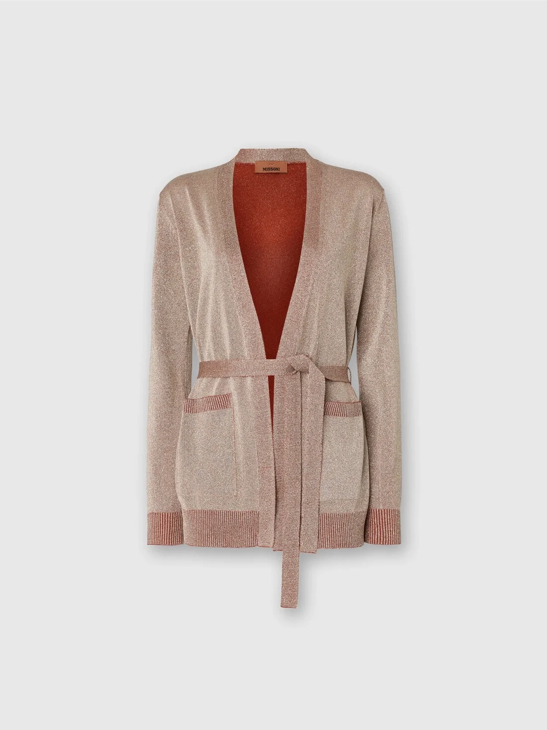 Women’s cardigan with waist belt, characterized by refined smooth vanise workmanship and enriched with lame threads that enhance its elegant luminosity. A piece that perfectly blends tradition and innovation, reflecting the maison’s savoir-faire in a contemporary and sophisticated design. MORE DETAILS - Cardigan with belt - Vanise knit - Viscose blend with lame threads Composition: EXTERNAL:87%Rayon, 13%Metal Fiber Care instructions: Ironing maximum temperature 110°C - without steam ; Dry cleaning in tetrachloroethene - mild process ; Do not tumble dry ; Dry flat ; Dry inside out ; Iron inside out ; Iron with a cloth between ; Do not wash ; Do not bleach Made in: Romania Product ID DS25WM0IBK01BYL201F