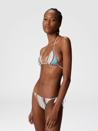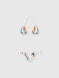 This triangle bikini features a refined wave pattern in lame fabric, which catches the light with a brilliant and sophisticated effect. The sinuous lines and the play of reflections create an elegant and refined aesthetic, enhancing the silhouette with a touch of glamour, perfect for those who want an exclusive look even by the sea. MORE DETAILS - Triangle bikini - Wave pattern - Lame filaments Composition: EXTERNAL:95%Rayon, 5%Metal Fiber; LINING : 80%Polyamide, 20%Elastane Care instructions: Hand wash ; Do not tumble dry ; Do not dry clean ; Do not iron ; Do not bleach Made in: Italy Product ID MC22SP00BR0100SM9L0