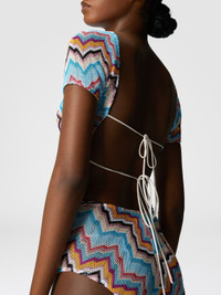 An innovative design for the bikini with a T-shirt top, made from Caperdoni craftsmanship that celebrates Missoni's iconic zigzag pattern. Lame and dual ties at the back make this piece unique and versatile. MORE DETAILS - Women's bikini - T-shirt design - Iconic zig zag pattern - Caperdoni workmanship Composition: EXTERNAL:89%Rayon, 11%Metal Fiber; LINING : 80%Polyamide, 20%Elastane Care instructions: Hand wash ; Do not tumble dry ; Do not dry clean ; Do not iron ; Do not bleach Made in: Italy Product ID MS25SP0WBC005JS72LG