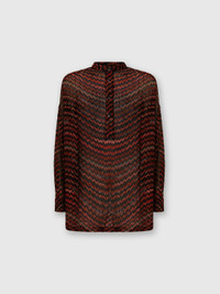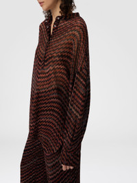 A masterpiece of textile craftsmanship, this oversized women’s blouse with mandarin collar is made on a Caperdoni loom with a sophisticated wavy zigzag motif. The viscose and cotton blend yarn enhances the texture with softness and definition, for a piece with distinctive and refined style. MORE DETAILS - Oversized blouse - Mandarin neckline - Caperdoni loom knit - Wavy zig zag pattern - Viscose and cotton blend Composition: EXTERNAL:92%Rayon, 8%Cotton Care instructions: Dry cleaning in tetrachloroethene - mild process ; Wash max 30°C - Very mild process ; Do not tumble dry ; Steam iron only ; Dry flat ; Do not iron ; Do not bleach Made in: Italy Product ID DS25WJ0FBC005DS4174