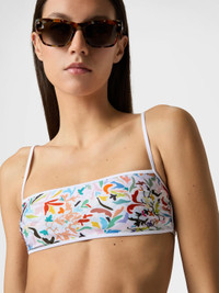 This women’s bralette bikini in printed stretch fabric features a front cut-out and a delicate back twist, interpreting sensuality with effortless elegance and a modern spirit. MORE DETAILS - Women's bralette bikini - Front cut-out and crossed back - Printed stretch fabric Composition: EXTERNAL:82%Polyester, 18%Elastane Care instructions: Hand wash ; Do not tumble dry ; Do not dry clean ; Do not iron ; Cool Hand Wash ; Do not bleach Made in: Italy Product ID MS26SP0MBJ00PZSM9Z6