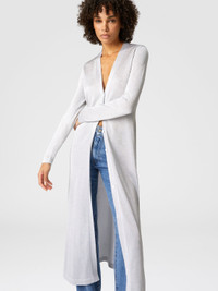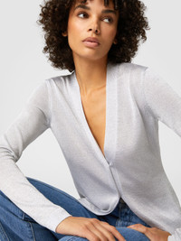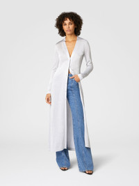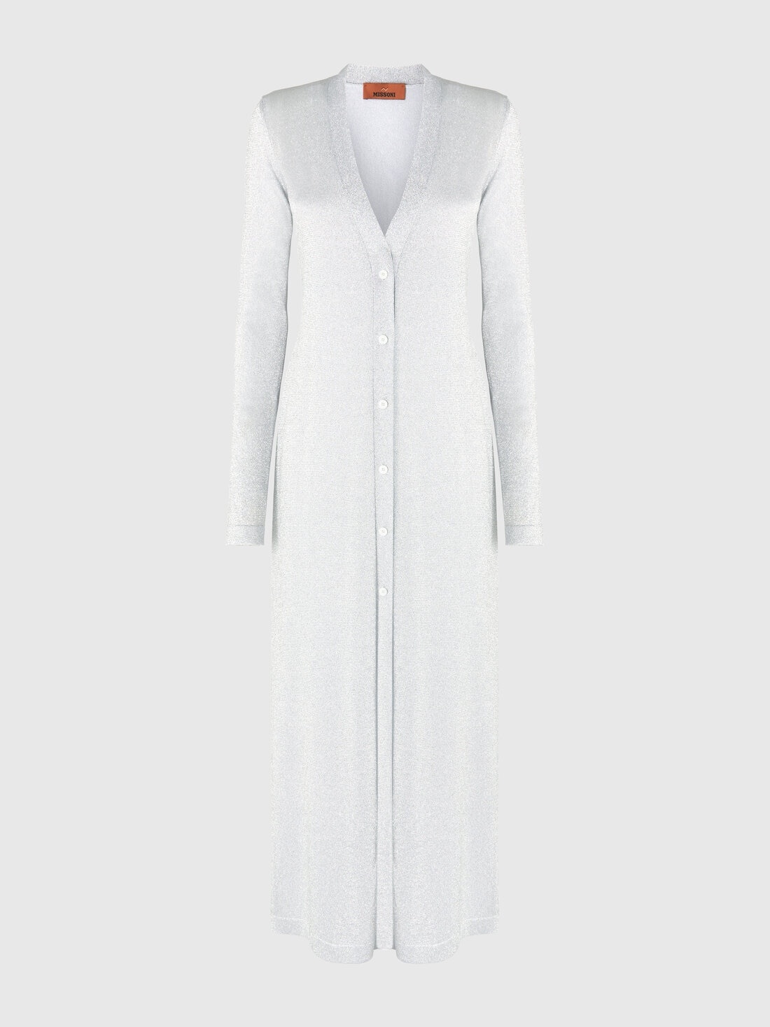 This long cardigan, crafted from lame viscose, celebrates Missoni's timeless elegance. The tonal vanise stockinette knit with lurex threads gives an elegant luminosity, while the tone-on-tone buttons add a touch of understated sophistication. The result is a garment that encapsulates the essence of the maison's savoir-faire, blending tradition and innovation in a contemporary design. MORE DETAILS - Viscose tank top - Lame filaments - Gradient chevron Composition: EXTERNAL:87%Rayon, 13%Metal Fiber Care instructions: Dry cleaning in tetrachloroethene - mild process ; Ironing maximum temperature 110°C - without steam ; Dry flat ; Do not tumble dry ; Iron inside out ; Dry inside out ; Do not wash ; Do not bleach Made in: Romania Product ID DS25SM0EBK045AS01GC