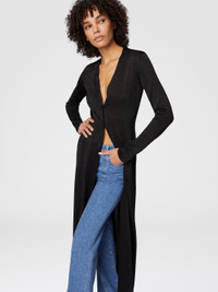 This long cardigan, crafted from lame viscose, celebrates Missoni's timeless elegance. The tonal vanise stockinette knit with lurex threads gives an elegant luminosity, while the tone-on-tone buttons add a touch of understated sophistication. The result is a garment that encapsulates the essence of the maison's savoir-faire, blending tradition and innovation in a contemporary design. MORE DETAILS - Viscose tank top - Lame filaments - Gradient chevron Composition: EXTERNAL:87%Rayon, 13%Metal Fiber Care instructions: Dry cleaning in tetrachloroethene - mild process ; Ironing maximum temperature 110°C - without steam ; Dry flat ; Do not tumble dry ; Iron inside out ; Dry inside out ; Do not wash ; Do not bleach Made in: Romania Product ID DS25SM0EBK045AS91NK