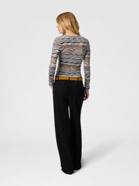 Refined cardigan with V-neck and button closure for women, made from a fine blend of viscose and wool. The elegant and dynamic wave motif enriches the garment with a delicate and sophisticated texture, perfect for adding a touch of class to any look. MORE DETAILS - Buttoned cardigan - V-neck - Wave pattern - Wool and viscose blend Composition: EXTERNAL:54%Rayon, 43%Wool, 2%Polyamide, 1%Elastane Care instructions: Ironing maximum temperature 110°C - without steam ; Dry cleaning in tetrachloroethene ; Dry flat ; Iron inside out ; Steam iron only ; Do not tumble dry ; Do not wash ; Do not bleach Made in: Romania Product ID DS25WM03BK01C0SM9SR