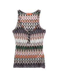 buttoned patterned tank top Highlights - Brown and multicoloured - Patterned - Sleeveless - Button detail - Square neck - Knitted - The item you receive may differ slightly from the item photographed. this is due to the artisanal nature with which all missoni products are constructed. Made in Italy Composition Viscose 52%, Cotton 39%, Metallic Fibre 9% Washing instructions Hand Wash