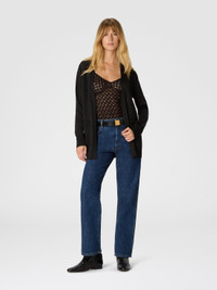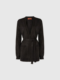 Women’s cardigan with waist belt, characterized by refined smooth vanise workmanship and enriched with lame threads that enhance its elegant luminosity. A piece that perfectly blends tradition and innovation, reflecting the maison’s savoir-faire in a contemporary and sophisticated design. MORE DETAILS - Cardigan with belt - Vanise knit - Viscose blend with lame threads Composition: EXTERNAL:87%Rayon, 13%Metal Fiber Care instructions: Ironing maximum temperature 110°C - without steam ; Dry cleaning in tetrachloroethene - mild process ; Do not tumble dry ; Dry flat ; Dry inside out ; Iron inside out ; Iron with a cloth between ; Do not wash ; Do not bleach Made in: Romania Product ID DS25WM0IBK01BYL905E