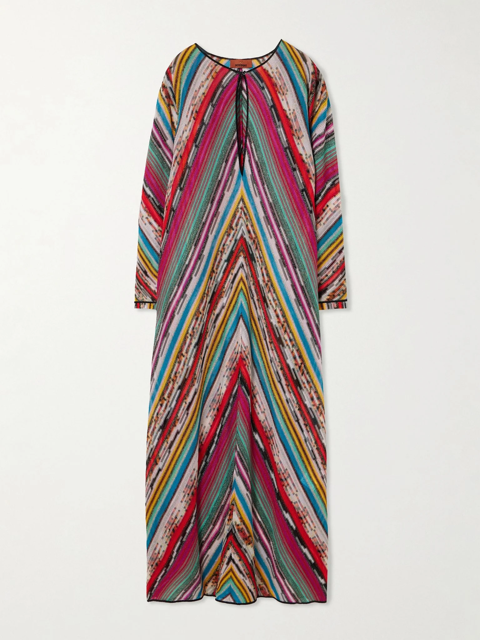 Missoni's coverup is patterned with the label's signature chevron stripes, making it instantly recognizable. It's crochet-knitted with touches of metallic threads and has a button-fastening keyhole at the front. Slip yours on over the label's swimwear. Size & Fit - Fits true to size, take your normal size - Designed for a loose fit - Lightweight, stretchy fabric - Model is 180cm/ 5'11" and is wearing a size Small Model measurements: - Bust: 81cm/ 32" - Waist: 65cm/ 25.5” - Hip: 95cm/ 37.5” Details & Care - Multicolored crochet-knit - Button-fastening keyhole at front - 88% viscose, 12% metallic fibers - Dry clean