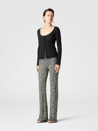 The cotton-blend cardigan, with a refined zigzag pattern, embodies the distinctive elegance of Missoni's DNA. The fitted cut model stands out for its plunging neckline and essential line, perfect for enhancing the silhouette. The tonal buttons and the subtle weave of the knit give a touch of timeless sophistication, ideal for any occasion. MORE DETAILS - Flare Pants - Viscose processing - Lame filaments - iconic zigzag pattern - sequin inserts Composition: EXTERNAL:74%Cotton, 26%Rayon; INSERTS:96%Rayon, 4%Elastane Care instructions: Dry cleaning in tetrachloroethene - mild process ; Steam iron only ; Dry flat ; Do not tumble dry ; Do not iron ; Do not wash ; Do not bleach Made in: Italy Product ID DS25SM0FBV00GR93911