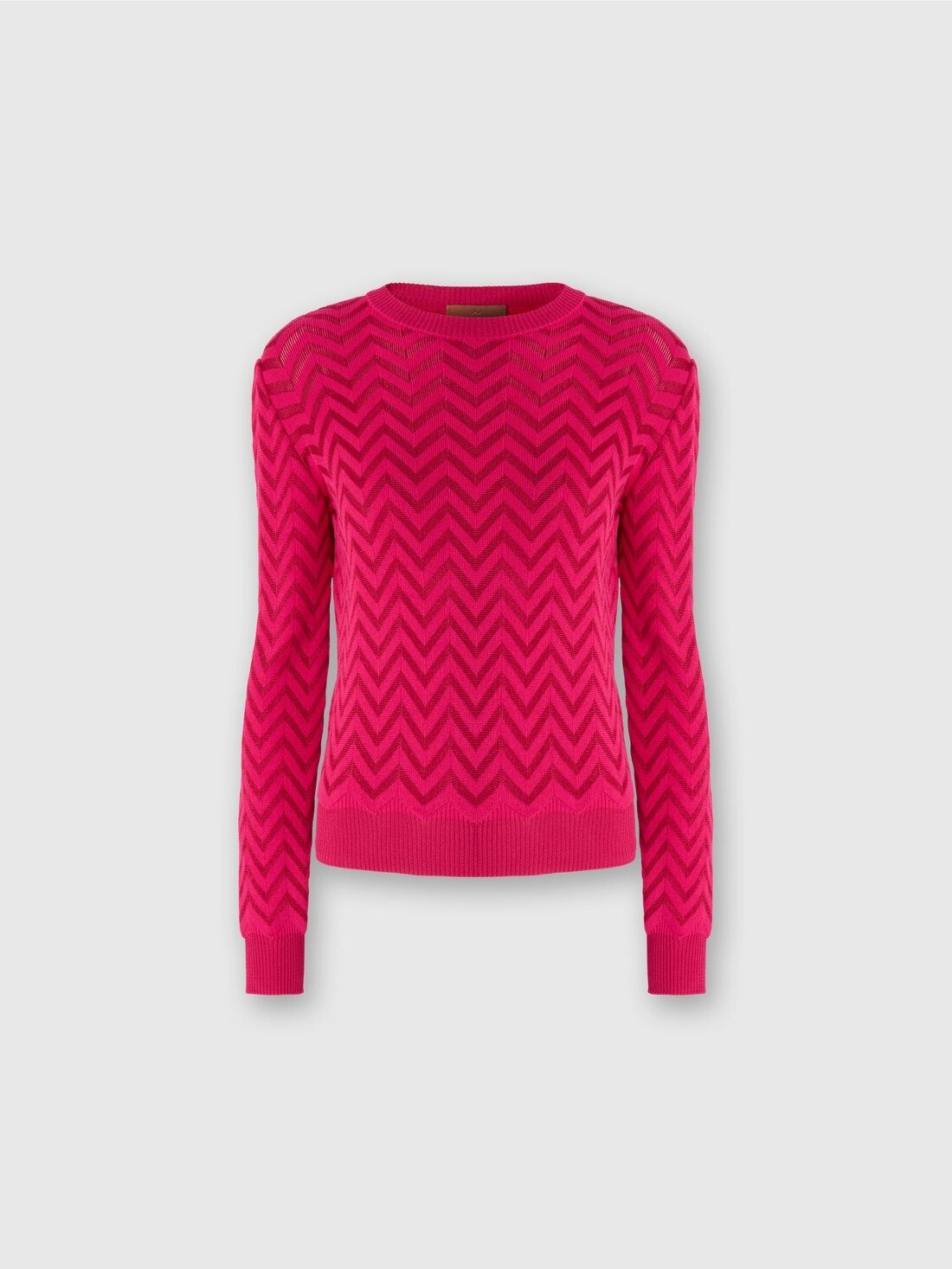 This crew neck sweater is the essence of casual sophistication. The tone-on-tone chevron motif, combined with the classic line, makes the garment versatile for any occasion, always with that unmistakable Missoni touch. MORE DETAILS - Tonal chevron pattern - Classic Crew Neck - Comfortable fit Composition: EXTERNAL:52%Cotton, 46%Rayon, 1%Elastane, 1%Polyamide Care instructions: Dry cleaning in tetrachloroethene - mild process ; Ironing maximum temperature 110°C - without steam ; Do not tumble dry ; Dry flat ; Iron inside out ; Dry inside out ; Do not wash ; Do not bleach Made in: Italy Product ID DS25SN09BK044U72036