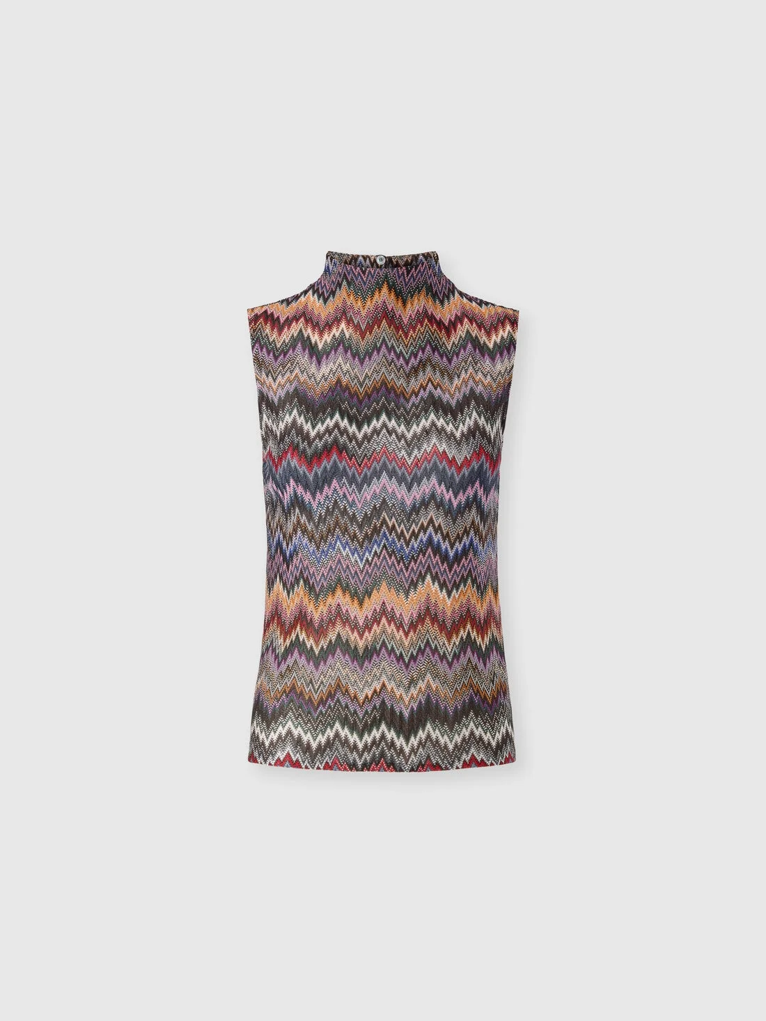 With bold and refined design, this sleeveless high-neck women's top is made of 100% viscose, featuring raschel workmanship that creates a snake motif inspired by Missoni’s iconic zigzag. An elegant and contemporary garment, perfect for adding a distinctive touch to your wardrobe with a play of unique shapes and textures. MORE DETAILS - Women's sleeveless mock-neck top - Raschel knit snake pattern - 100% viscose Composition: EXTERNAL:100%Rayon Care instructions: Dry cleaning in tetrachloroethene - mild process ; Ironing maximum temperature 110°C - without steam ; Do not tumble dry ; Dry flat ; Do not wash ; Do not bleach Made in: Italy Product ID DS25WK05BR012GSM9U4