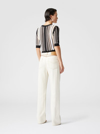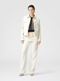 These 5-pocket trousers are distinguished by discreet tone-on-tone inserts with zigzag greek, which add a refined and distinctive detail. The fusion of classic functionality and decorative element makes them a unique and versatile garment, which expresses Missoni's artisanal savoir-faire. MORE DETAILS - Denim jacket - Zig zag greek inserts Composition: EXTERNAL:100%Cotton; INSERTS:65%Rayon, 27%Cotton, 8%Metal Fiber Care instructions: Hand wash ; Dry cleaning in tetrachloroethene - mild process ; Dry flat ; Do not tumble dry ; Steam iron only ; Do not iron ; Do not bleach Made in: Italy Product ID DS25SI0LBW00UOS01GB