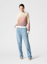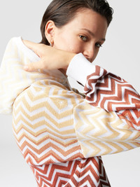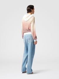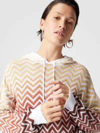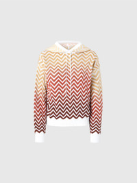The Missoni hoodie features the degrade chevron motif, a hallmark of the maison. The contrasting stretch profiles give it a contemporary touch, while the comfort of the jacquard knit demonstrates the perfect combination of functionality and iconic design. MORE DETAILS - Cardigan with belt - Jacquard workmanship - Degrade chevron pattern - Waist belt - Contrasting profiles - Pockets Composition: EXTERNAL:65%Cotton, 35%Rayon Care instructions: Ironing maximum temperature 110°C - without steam ; Dry cleaning in tetrachloroethene - mild process ; Dry inside out ; Do not tumble dry ; Dry flat ; Iron inside out ; Do not wash ; Do not bleach Made in: Italy Product ID DS25SW00BK044VSM9M9
