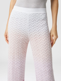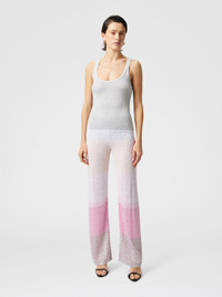 These straight trousers, made of viscose, express all the essence of Missoni's savoir-faire through the gradient chevron motif. Their clean line and chromatic balance make them a garment of great versatility and refinement, perfect for a refined look but without excesses. MORE DETAILS - Crew neck sweater - Chevron Viscose - Gradient vanise chevron pattern - Oversized fit Composition: EXTERNAL:100%Rayon; LINING : 82%Polyester, 18%Elastane Care instructions: Ironing maximum temperature 110°C - without steam ; Dry cleaning in tetrachloroethene - mild process ; Do not tumble dry ; Dry inside out ; Dry flat ; Iron inside out ; Do not wash ; Do not bleach Made in: Italy Product ID DS25SI07BK044XSM9MF