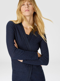 A sophisticated and distinctive garment. This women's cardigan with belt in a cotton and viscose blend with lame filaments is defined by its tone-on-tone jacquard weave with chevron pattern, an iconic element of Missoni style. A design that enhances the silhouette with elegance and modernity. MORE DETAILS - Women's belted cardigan - Jacquard weave - Chevron pattern - Cotton blend with lame filaments Composition: EXTERNAL:56%Cotton, 32%Rayon, 6%Metal Fiber, 6%Polyester Care instructions: Hand wash ; Dry cleaning in tetrachloroethene - mild process ; Ironing maximum temperature 110°C - without steam ; Do not tumble dry ; Dry flat ; Do not bleach Made in: Tunisia Product ID DS25WM11BK01B7S72O5