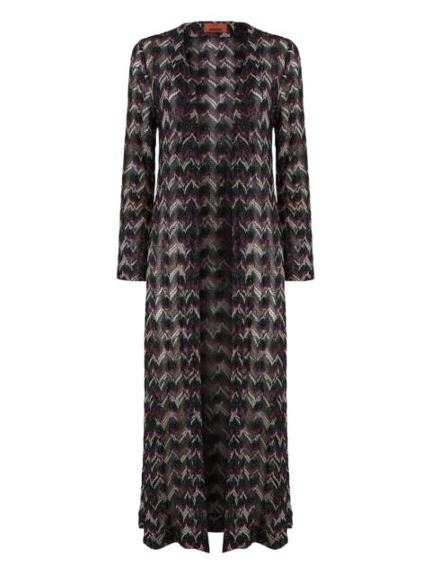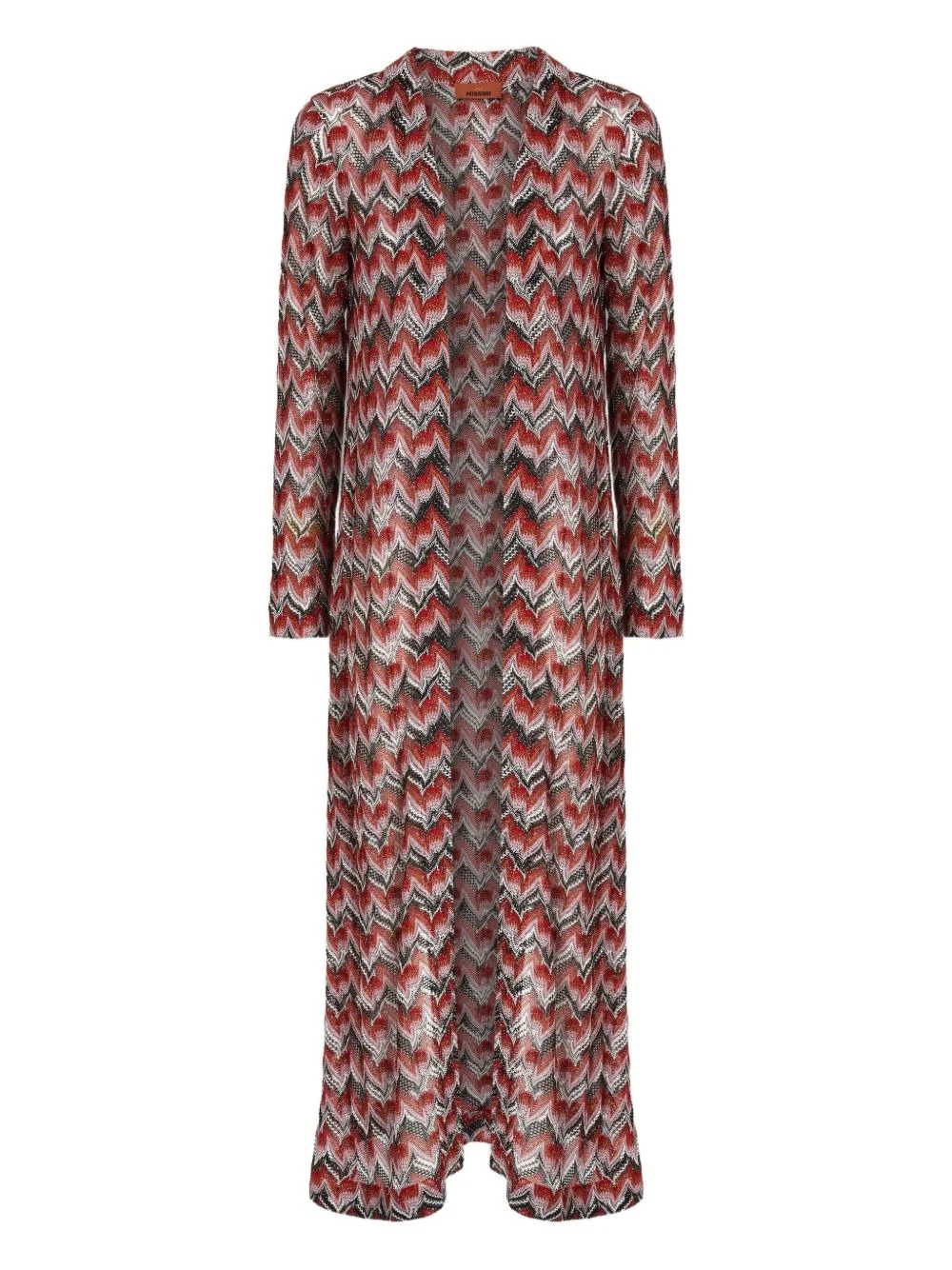 chevron-pattern maxi cardigan Highlights - Red - Chevron pattern - Long sleeves - Open front - Maxi length - The item you receive may differ slightly from the item photographed. this is due to the artisanal nature with which all missoni products are constructed. Made in Italy Composition Rayon 89%, Metallised Fibres 11% Washing instructions Read Manufacturer Guidelines