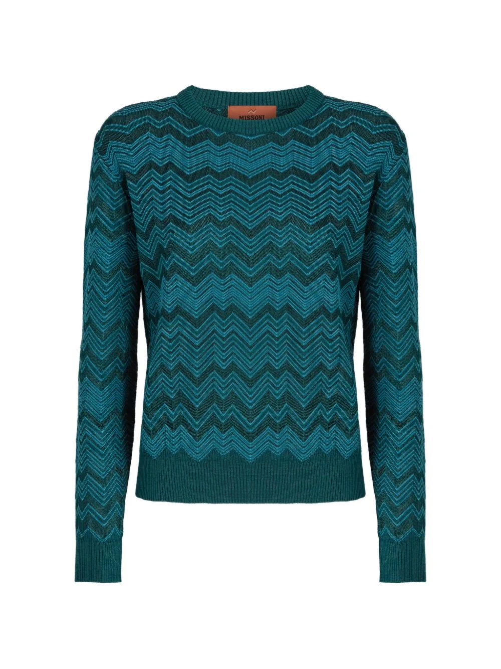 chevron-pattern sweater Highlights - Green - Chevron pattern - Round neck - Long sleeves - Ribbed hem and cuffs - The item you receive may differ slightly from the item photographed. this is due to the artisanal nature with which all missoni products are constructed. Made in Italy Composition Rayon 49%, Wool 44%, Polyester 5%, Elastane 1%, Polyamide 1% Washing instructions Dry Clean Only