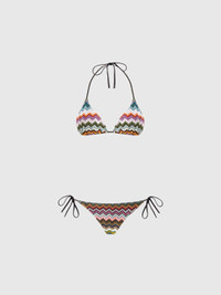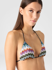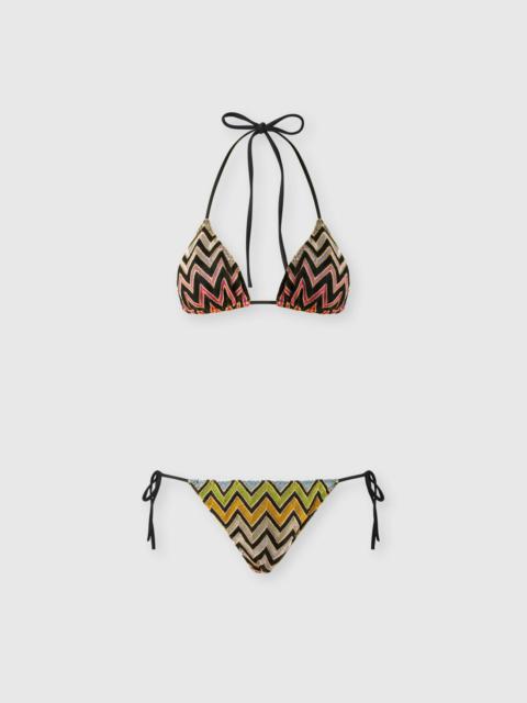 Triangle bikini in lamé viscose with pixel-effect zigzag pattern