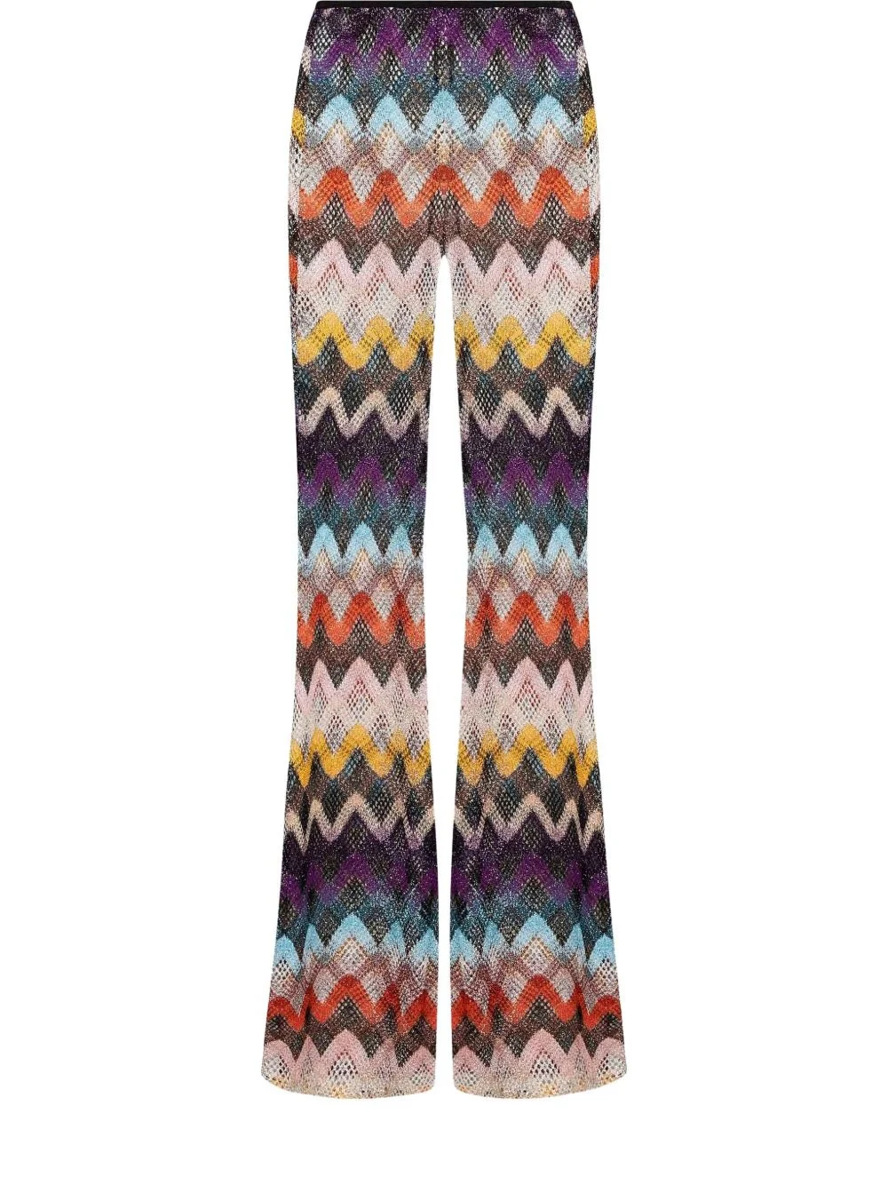 chevron-pattern trousers Highlights - Multicolour - Chevron pattern - Flared leg - Knit texture - The item you receive may differ slightly from the item photographed. this is due to the artisanal nature with which all missoni products are constructed. Made in Italy Composition Viscose 73%, Metallic Fibre 14%, Polyamide 13% Washing instructions Read Manufacturer Guidelines