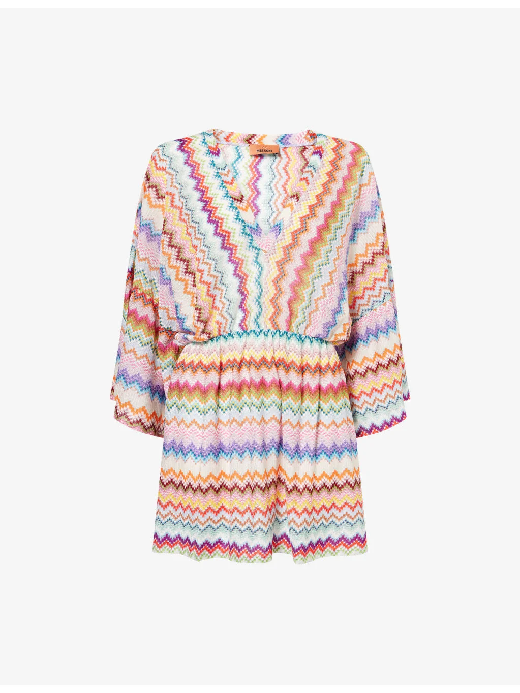 PRODUCT DETAILS - Missoni knitted mini dress - 91% rayon, 9% metallic fibres - Relaxed fit, V-neckline, wide sleeves, chevron zig-zag knit, flared hem - Hand wash cold - True to size - Model is 5ft 10in/1.78m and wears a size small - Lightweight, stretchy Ref: R04566518
