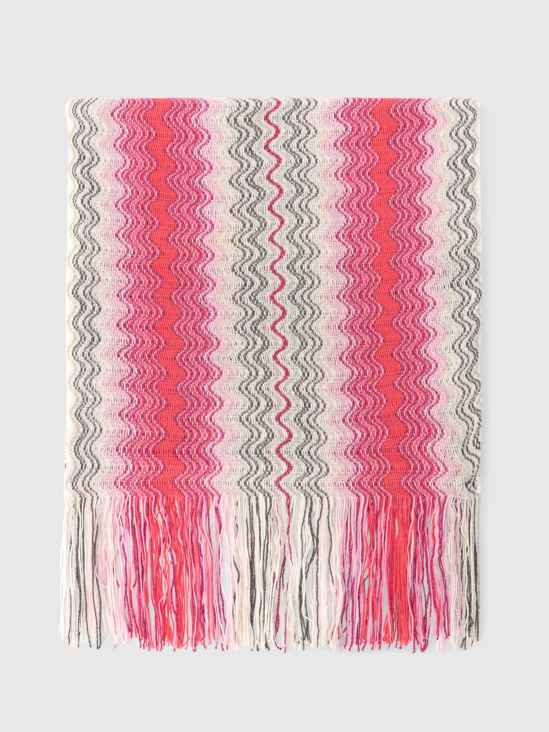 Women’s scarf in a cotton and viscose blend, featuring a delicate wave pattern that recalls the maison’s signature weaves. The fringes along the edges complete the design with a soft and dynamic touch. MORE DETAILS - Women's scarf with fringes - Wave pattern - Viscose blend Composition: EXTERNAL:65%Cotton, 23%Rayon, 12%Polyester Care instructions: Dry cleaning in tetrachloroethene ; Do not tumble dry ; Do not wash ; Do not iron ; Do not bleach Made in: Italy Product ID LS26SS1FBV00J1SM67T