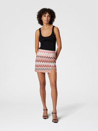 An explosion of chromatic energy animated by the shiny and matte zigzag pattern characterizes this miniskirt. The side vent adds a touch of dynamism, making every movement smooth and sophisticated. A garment that embodies Missoni's stylistic audacity, with the unmistakable raschel workmanship that celebrates the fusion of art and fashion. MORE DETAILS - Single-breasted blazer - Cotton and viscose processing - Zigzag pattern Composition: EXTERNAL:52%Cotton, 48%Rayon; INTERNAL REINFORCEMENT:100%Polyester Care instructions: Hand wash ; Dry cleaning in tetrachloroethene - mild process ; Dry flat ; Do not tumble dry ; Steam iron only ; COOL HAND WASH ; Do not iron ; Do not bleach Made in: Italy Product ID DS25SH0DBR00ZUSM9KX