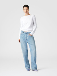 This crew neck sweater is the essence of casual sophistication. The tone-on-tone chevron motif, combined with the classic line, makes the garment versatile for any occasion, always with that unmistakable Missoni touch. MORE DETAILS - Tonal chevron pattern - Classic Crew Neck - Comfortable fit Composition: EXTERNAL:52%Cotton, 46%Rayon, 1%Elastane, 1%Polyamide Care instructions: Dry cleaning in tetrachloroethene - mild process ; Ironing maximum temperature 110°C - without steam ; Do not tumble dry ; Dry flat ; Iron inside out ; Dry inside out ; Do not wash ; Do not bleach Made in: Italy Product ID DS25SN09BK044U14001