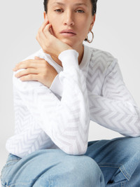 Tone-on-tone chevron crewneck sweater