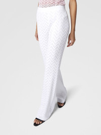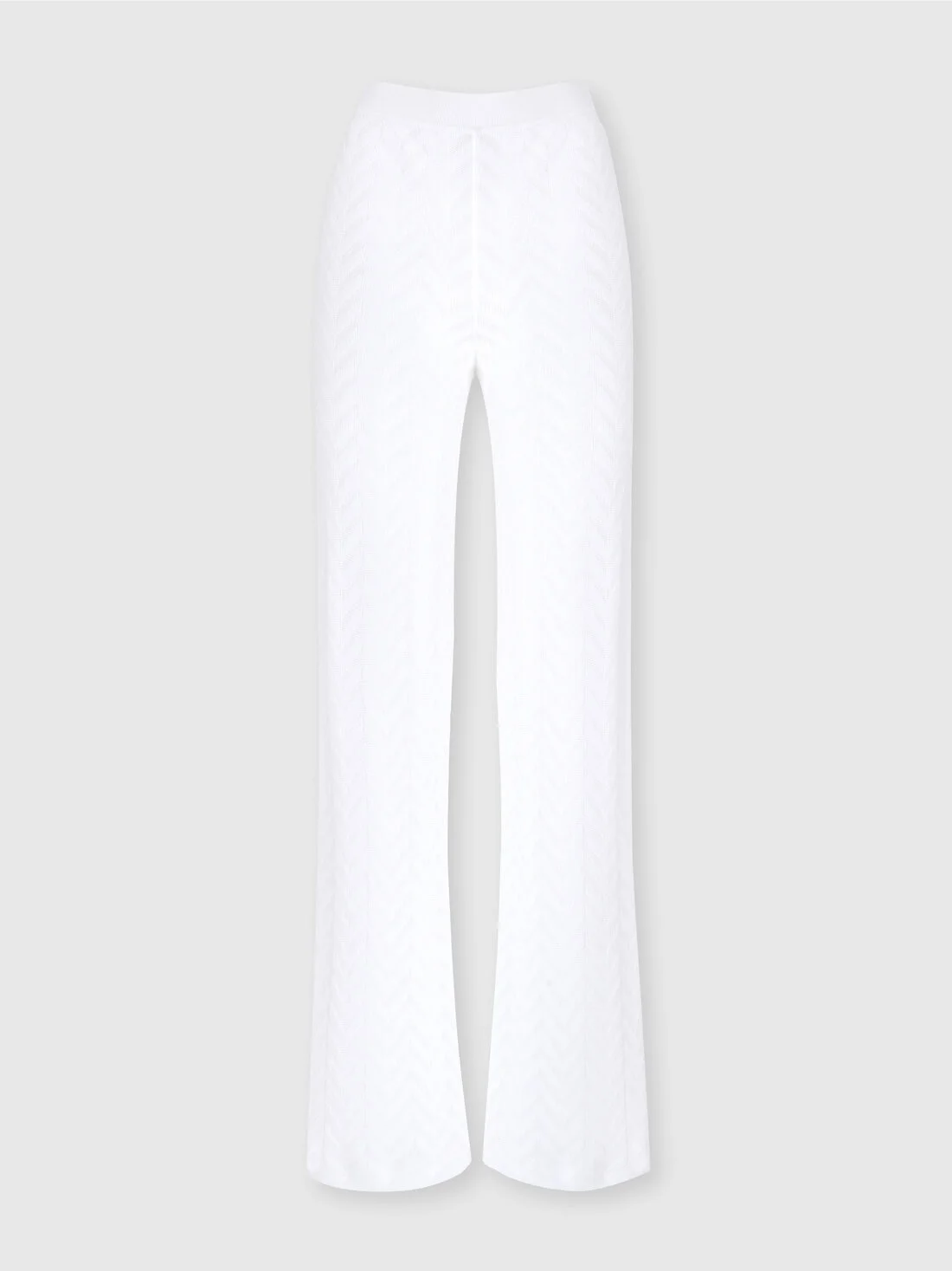 These straight jacquard trousers with a tonal chevron pattern embody the essence of Missoni's heritage. The minimalist design is combined with the practicality of the elastic waistband, ensuring comfort without compromising the intrinsic elegance of the worked fabric. MORE DETAILS - Straight Pants - Tonal chevron pattern - Jacquard workmanship - Elastic waistband Composition: EXTERNAL:65%Cotton, 33%Rayon, 1%Elastane, 1%Polyamide Care instructions: Ironing maximum temperature 110°C - without steam ; Dry cleaning in tetrachloroethene - mild process ; Iron inside out ; Do not tumble dry ; Dry flat ; Dry inside out ; Do not wash ; Do not bleach Made in: Italy Product ID DS25SI05BK044U14001