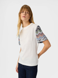 Cotton Jersey Crewneck T-Shirt with Contrast Sleeves