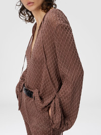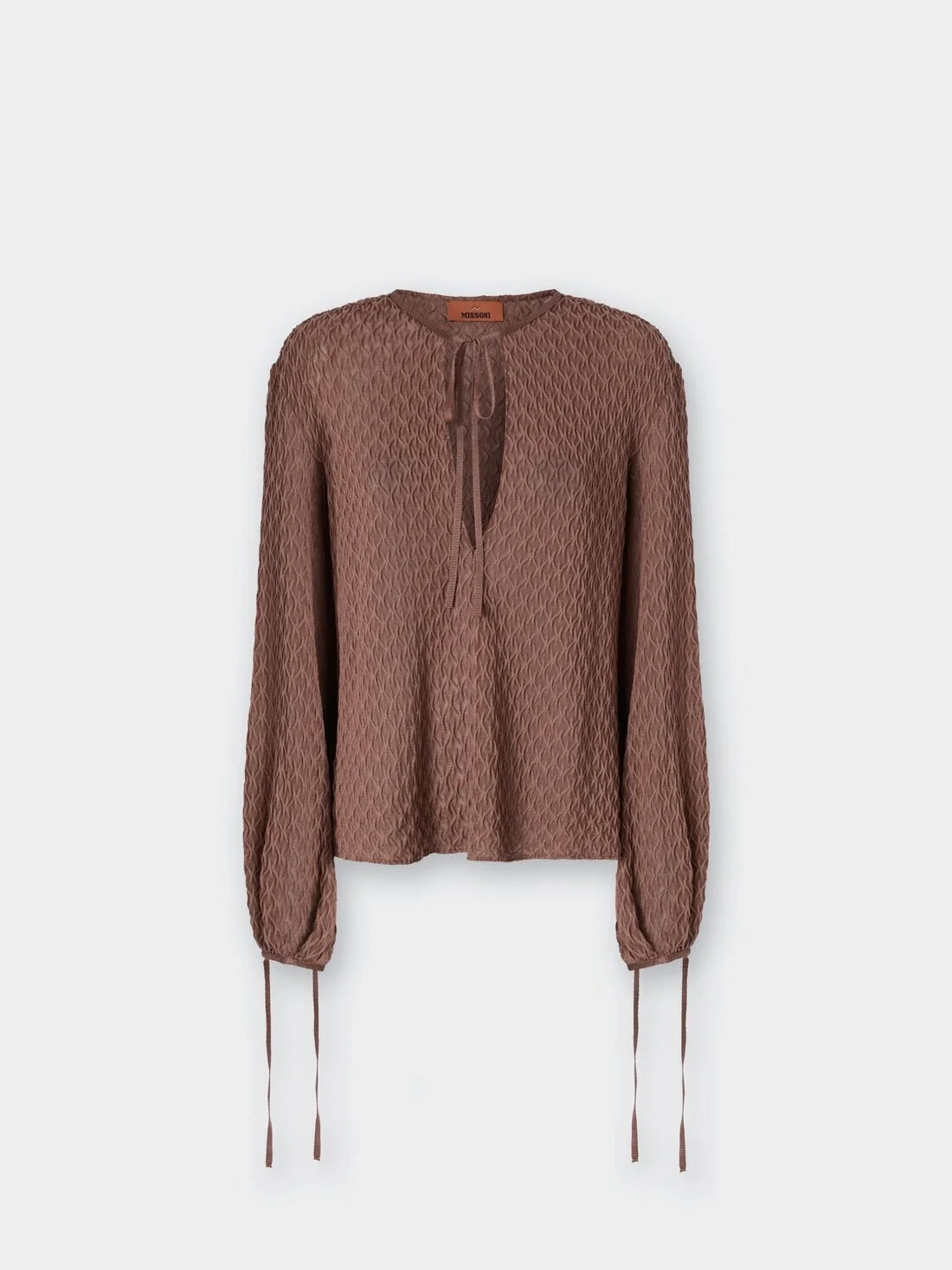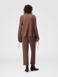 A refined women’s blouse with teardrop neckline and sophisticated raschel lace in ribbed pattern. Made in solid color wool blend, the piece combines elegance and structure, for a sophisticated and modern look perfect for special occasions. MORE DETAILS - Crew neck blouse - Raschel knit in raised lace pattern - Solid color - Wool blend Composition: EXTERNAL:54%Wool, 46%Rayon Care instructions: Ironing maximum temperature 110°C - without steam ; Dry cleaning in tetrachloroethene - mild process ; Do not tumble dry ; Dry flat ; Do not wash ; Do not bleach Made in: Italy Product ID DS25WJ0KBR012J81314