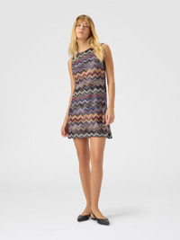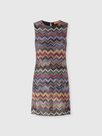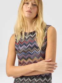 With a graphic and feminine soul, this sleeveless mini dress with a crew neck is made of pure viscose with refined raschel workmanship. The snake motif, evoking Missoni’s iconic zigzag, gives the piece a distinctive and modern touch, perfect for a bold yet sophisticated style. MORE DETAILS - Women's mini dress - Raschel knit snake pattern - 100% viscose Composition: EXTERNAL:100%Rayon; LINING : 77%Polyamide, 23%Elastane Care instructions: Ironing maximum temperature 110°C - without steam ; Dry cleaning in tetrachloroethene - mild process ; Dry flat ; Do not tumble dry ; Do not wash ; Do not bleach Made in: Italy Product ID DS25WG1XBR012GSM9U4