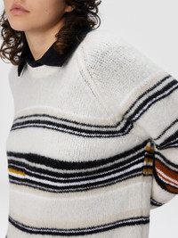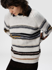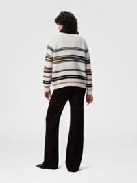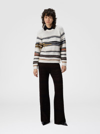 Oversized long-sleeve women’s crew-neck sweater, made from a precious blend of wool, mohair, and alpaca. The striped intarsia enhances the softness and lightness of the yarns, an expression of Missoni’s constant pursuit of quality and refinement in materials—always a distinctive signature of the brand. MORE DETAILS - Oversized crew neck long-sleeve sweater - Striped intarsia - Wool, mohair, and alpaca blend Composition: EXTERNAL:43%Polyester, 19%Polyamide, 16%Wool, 14%Mohair goat, 4%Alpaca Fibra, 2%Cotton, 2%Elastane Care instructions: Hand wash ; Ironing maximum temperature 110°C - without steam ; Dry cleaning in tetrachloroethene ; Dry flat ; Dry inside out ; Do not tumble dry ; Iron with a cloth between ; Use neutral detergent ; Do not bleach Made in: Italy Product ID DS25WN0WBK01C5SM9SW