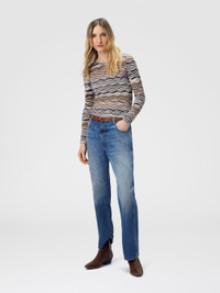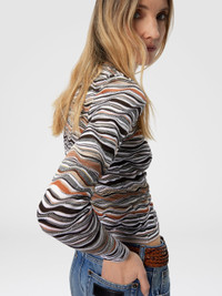 Long-sleeve crew-neck women’s sweater with an elegant and versatile design, in regular fit. Made from viscose blend, it is enriched by a wave motif that gives movement and character to the garment. An excellent choice for a refined and sophisticated look, combining comfort and style in a subtle way. MORE DETAILS - Regular fit crew neck long-sleeve sweater - Wave pattern - Viscose blend Composition: EXTERNAL:53%Rayon, 44%Wool, 2%Polyamide, 1%Elastane Care instructions: Ironing maximum temperature 110°C - without steam ; Dry cleaning in tetrachloroethene ; Iron inside out ; Steam iron only ; Dry flat ; Do not tumble dry ; Do not wash ; Do not bleach Made in: Romania Product ID DS25WN06BK01C0SM9SR