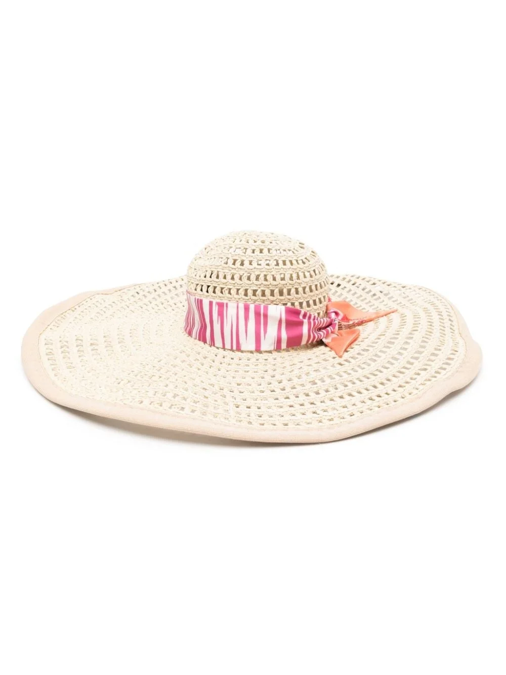 scarf-detail interwoven sun hat Highlights - Beige - Interwoven design - Scarf detailing - Internal logo patch - Round crown - Curved wide brim - Pull-on style - The item you receive may differ slightly from the item photographed. this is due to the artisanal nature with which all missoni products are constructed. Made in Italy Composition Polyester 100%, Viscose 100% SIZE & FIT Measurement BRIM 7.67 in(19.5 cm) CIRCUMFERENCE 21.25 in(54 cm)