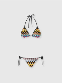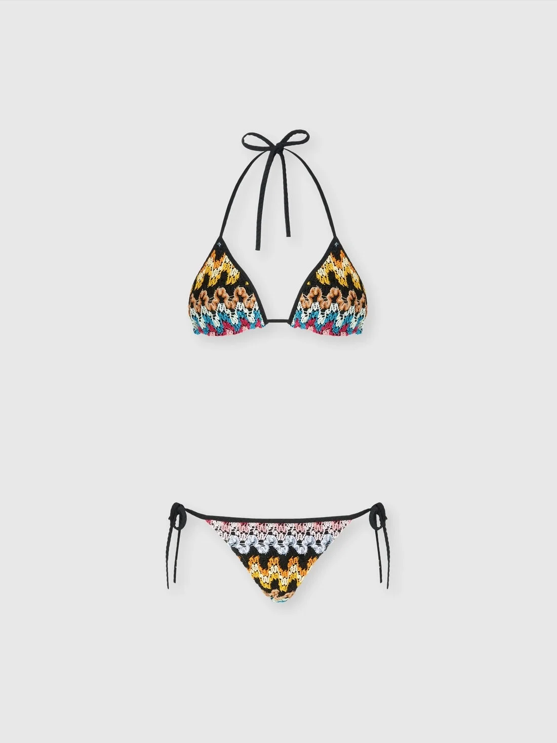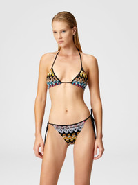 Crafted from lame viscose lace, this triangle bikini enhances the beauty and quality of the material with refined, luminous details. The delicate lace wraps the figure elegantly, while the zigzag pattern adds a touch of modern vibrancy. The triangle design enhances the natural shapes, offering a comfortable and feminine embrace. MORE DETAILS - Triangle bikini - Lame viscose lace - Crochet processing Composition: EXTERNAL:95%Rayon, 5%Metal Fiber; LINING : 80%Polyamide, 20%Elastane Care instructions: Hand wash ; Do not tumble dry ; Do not dry clean ; Do not iron ; Do not bleach Made in: Italy Product ID MC22SP00BR0000S91NA