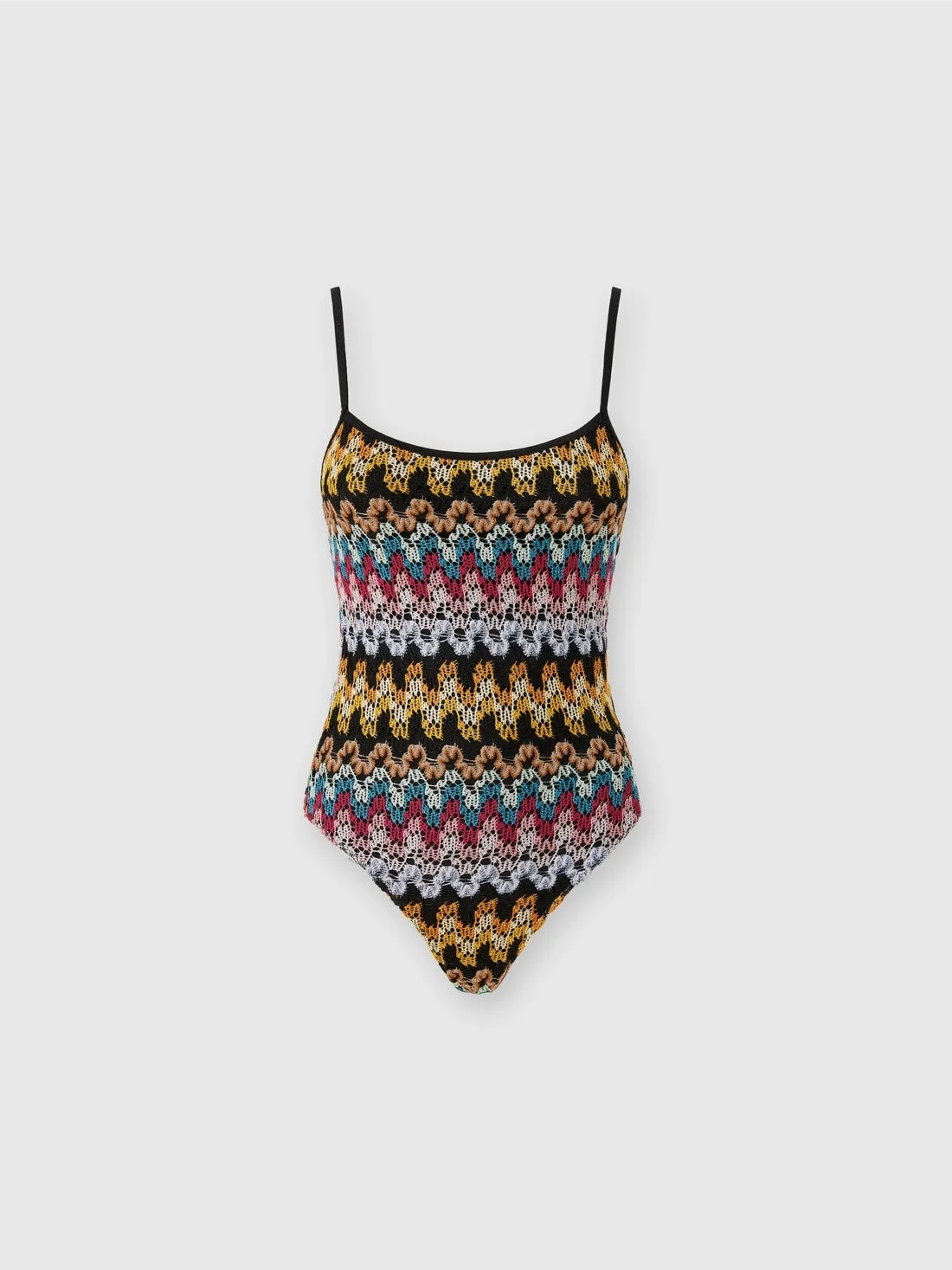 With its straight neckline and silhouette-flattering structure, this one-piece swimsuit stands out for its refined lame viscose lace workmanship. The vibrant shades, embellished with metallic reflections, give a luxurious and sophisticated dimension, transforming this garment into a true symbol of modern elegance. MORE DETAILS - One-piece swimsuit - Viscose lace work - Lame filaments Composition: EXTERNAL:95%Rayon, 5%Metal Fiber; LINING : 80%Polyamide, 20%Elastane Care instructions: Hand wash ; Do not tumble dry ; Do not dry clean ; Do not iron ; Do not bleach Made in: Italy Product ID MC23SP03BR0000S91NA
