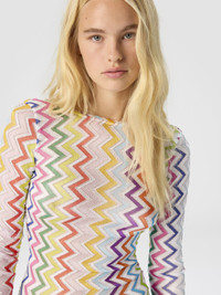 A short beach cover‑up with sophisticated charm made from viscose and lame combining lightness and brilliance. Long sleeves balance the deep open‑back design while the maison’s iconic zigzag pattern adds rhythm and personality. It is a garment ideal for elegantly elevating moments of summer relaxation. MORE DETAILS - Short viscose and lame cover-up dress - Long sleeve design - Back neckline - Iconic zig zag pattern Composition: EXTERNAL:60%Rayon, 25%Polyester, 15%Metal Fiber Care instructions: Hand wash ; Dry cleaning in tetrachloroethene - mild process ; Ironing maximum temperature 110°C - without steam ; Do not tumble dry ; Iron inside out ; Iron with a cloth between ; Do not bleach Made in: Italy Product ID MS25SQ1OBR012RSM9QI