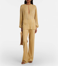 This Missoni blouse is a head-turning design for joyful festivities and refined events. Made from shimmering lame, the piece is finished with a keyhole cutout at the front. Product Details - Material: 66% viscose, 22% polyamide, 12% metallic fibres - Care instructions: hand wash - Made in Italy - Designer color name: Gold Tones - Item color: gold - Item number: P01108606 Size & Fit - True to size - Dropped shoulders - Designed for a loose fit - Slightly stretchy fabric - Falls below the hip - The model seen in the picture is 178cm-5'10" and wearing a size IT 38
