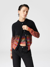 In this degrade slub cashmere cardigan, the fine quality of the materials meets the unmistakable craftsmanship of Missoni. The classic crew neck and tonal buttons add understated elegance, while the degrade motif enhances the lightness of the cashmere. A garment that expresses the sophistication and tradition of the maison. MORE DETAILS - Sleeveless top - Slub sweater - V-neck - Decorative sequins Composition: EXTERNAL:100%Cashmere goat Care instructions: Hand wash ; Ironing maximum temperature 110°C - without steam ; Dry cleaning in tetrachloroethene ; Iron inside out ; COOL HAND WASH ; Do not tumble dry ; Dry flat ; Use neutral detergent ; Do not bleach Made in: Italy Product ID DS25SM03BK045CS91NJ