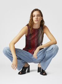 This sleeveless top represents Missoni's craftsmanship, combining the sophistication of partialized design with stripes with shimmering sequins and lame filaments. The classic crew neck contrasts with the slight flare, creating a modern and dynamic silhouette, perfect for a sophisticated and bright look. MORE DETAILS - Sleeveless top - Partial rows - Lame filaments - Decorative sequins Composition: EXTERNAL:69%Rayon, 12%Polyamide, 10%Metal Fiber, 8%Polyester, 1%Elastane Care instructions: Dry cleaning in tetrachloroethene - mild process ; Ironing maximum temperature 110°C - without steam ; Dry flat ; Do not tumble dry ; Iron inside out ; Dry inside out ; Do not wash ; Do not bleach Made in: Italy Product ID DS25SK0UBK042DSM9NA