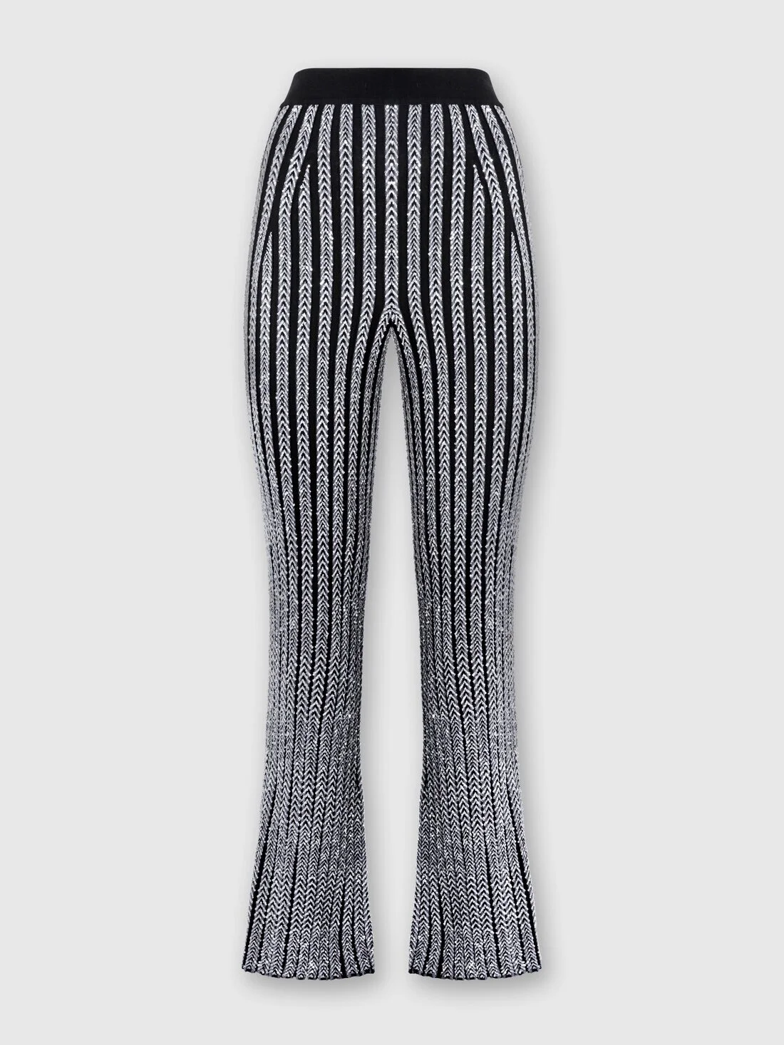The zigzag motif innervated with sequins, combined with the skilful partialized workmanship that guarantees the ribbed motif exceptional comfort: this is how the flare trousers with elastic waistband are transformed into an authentic masterpiece to wear. MORE DETAILS - Flare Pants - Elastic waistband - Partial machining - Zig Zag Pattern - Application of sequins Composition: EXTERNAL:55%Rayon, 23%Polyamide, 22%Polyester Care instructions: Ironing maximum temperature 110°C - without steam ; Hand wash ; Dry cleaning in tetrachloroethene - mild process ; Wash in net bag ; Do not tumble dry ; Dry flat ; Iron inside out ; Iron with a cloth between ; Do not bleach Made in: Italy Product ID DS24WI0RBK039GS91KF
