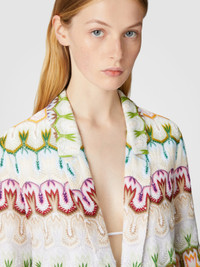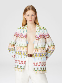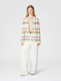 The women's single-breasted blazer, with a deep V-neck and a button that defines the silhouette, is made from a viscose and cotton blend with Raschel knitwork. Adorned with welt pockets and an abstract floral lace pattern, it combines elegance and modernity for a sophisticated and contemporary look. MORE DETAILS - Women's single-breasted lace blazer - Viscose blend, raschel lace pattern - Welt pockets Composition: EXTERNAL:76%Rayon, 24%Cotton; INTERNAL REINFORCEMENT:100%Polyester; LINING : 100%Polyester Care instructions: Dry cleaning in tetrachloroethene - mild process ; Do not tumble dry ; Dry flat ; Steam iron only ; Do not wash ; Do not iron ; Do not bleach Made in: Italy Product ID DS25SF0FBR0132SM9QS