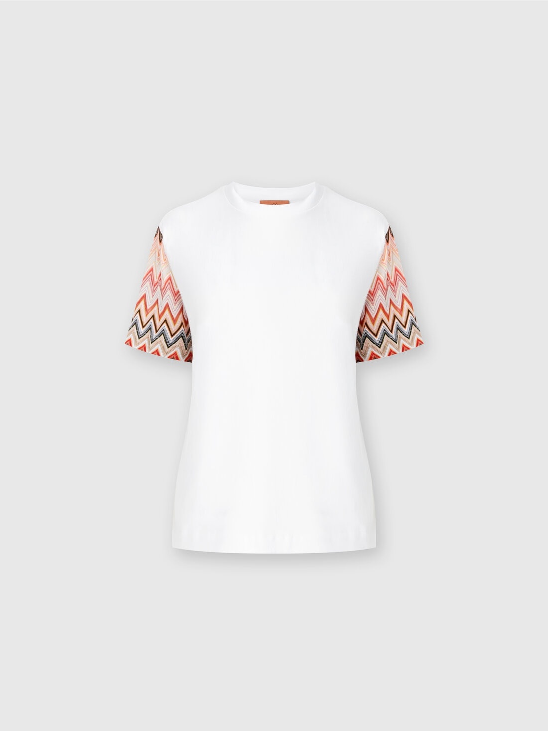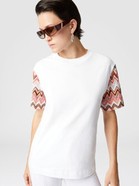 Crewneck T-shirt with zig zag knit sleeves