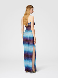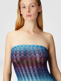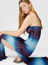 With its straight neckline and strapless design, this long cover-up merges femininity and modernity. The Raschel lacework with the iconic zigzag pattern, enhanced by lame, and the refined side slit define a contemporary and chic aesthetic. MORE DETAILS - Women's long cover-up - Strapless design - Straight neckline - Iconic zig zag pattern Composition: EXTERNAL:88%Rayon, 12%Metal Fiber Care instructions: Ironing maximum temperature 110°C - without steam ; Dry cleaning in tetrachloroethene ; Do not tumble dry ; Do not wash ; Do not bleach Made in: Italy Product ID MS25SQ1QBR012US6152