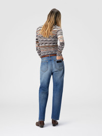 An expression of Missoni’s distinctive tailoring, this mid-rise five-pocket women’s trouser reinterprets a denim classic with attention to detail and precise cut. Made from cotton, it blends authenticity and refined construction in a timeless piece with a contemporary touch. MORE DETAILS - Five-pocket mid-rise pants - Washed cotton denim - 100% cotton Composition: EXTERNAL:100%Cotton Care instructions: Dry cleaning in tetrachloroethene - mild process ; Wash max 30°C ; Ironing maximum temperature 110°C - without steam ; Wash inside out ; Do not tumble dry ; Line dry ; Do not bleach Made in: Italy Product ID DS25WI0NBW00YNS72NB